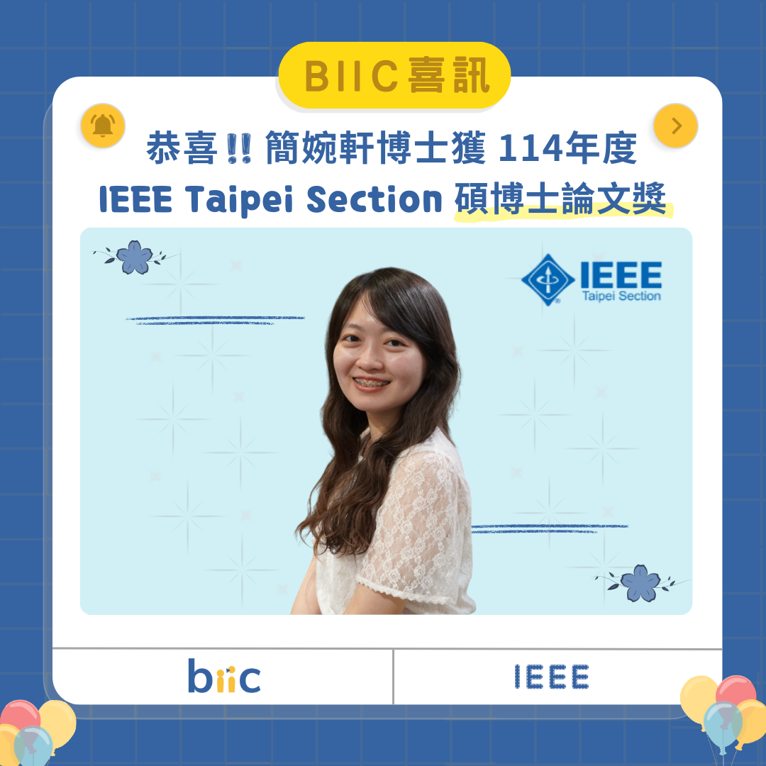 BIIC lab 博後 簡婉軒 榮獲 IEEE Taipei Section 114 年碩博士論文獎